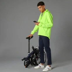BTWIN VESTE PLUIE VELO VILLE HOMME 120 JAUNE FLUO CERTIFIÉE EPI VISIBILITÉ JOUR