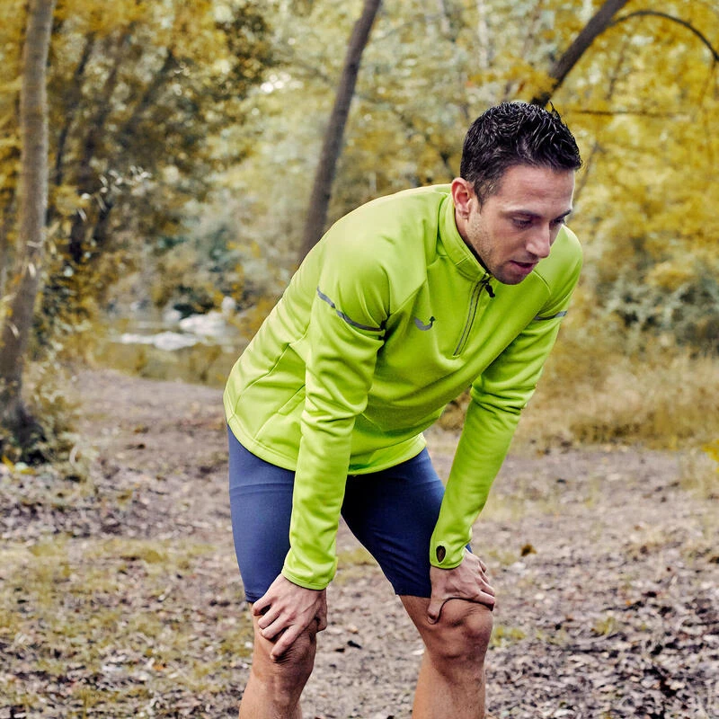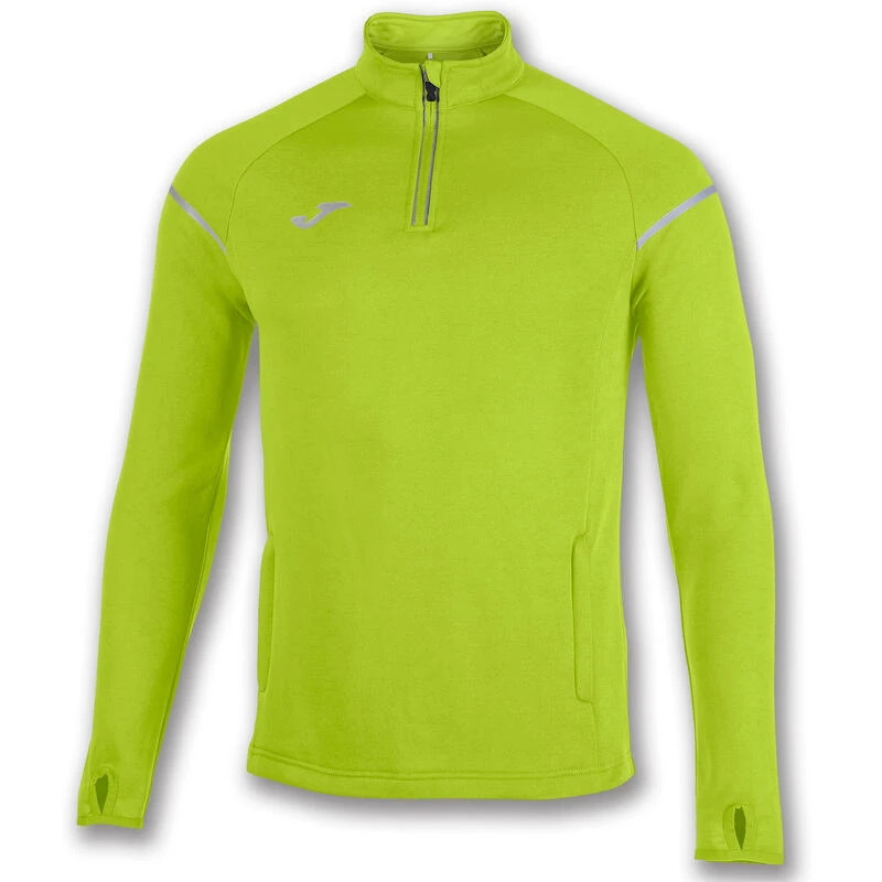 Sweat-shirt à 1/2 fermeture à glissière avec des éléments réfléchissants derrière, sur les manches, logo et fermeture à glissière pour une meilleure visibilité dans des zones peu éclairées.
