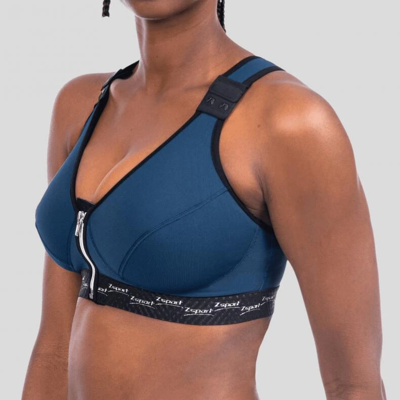 Le soutien-gorge sport Zbra® Silver est conçu pour les femmes à la recherche d’un maintien extrême ou ayant une forte poitrine. La fermeture par zip frontal facilite l’habillage et le déshabillage.